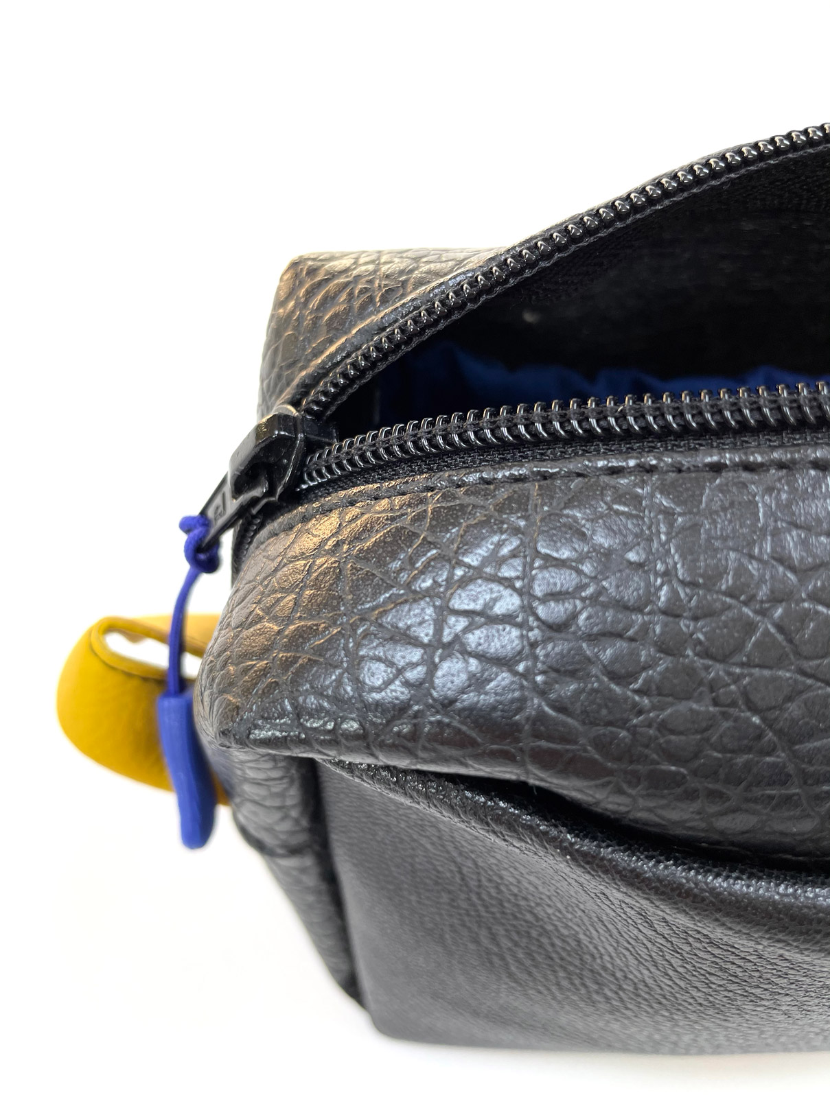 Recycled leather made from plastic bottles, inner compartments, different colors and sizes.