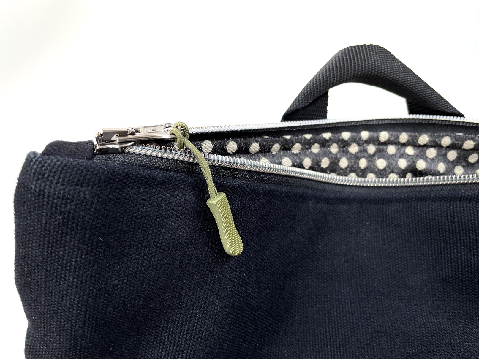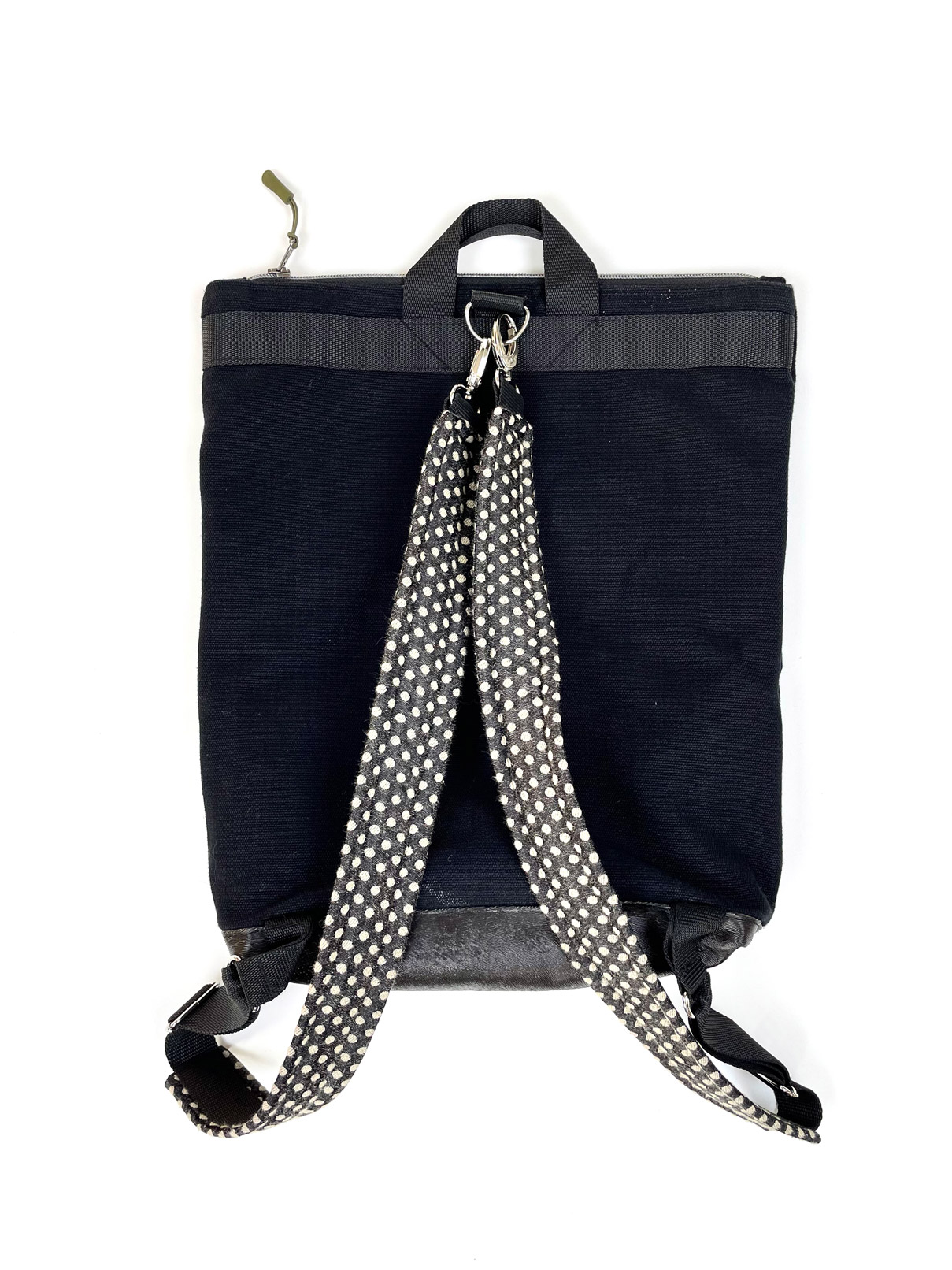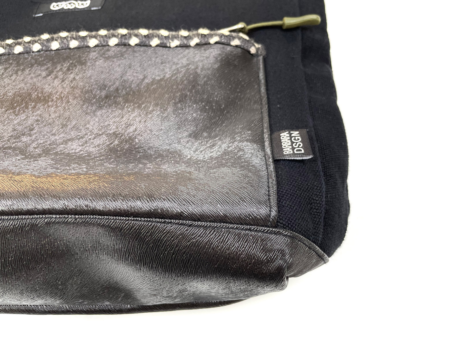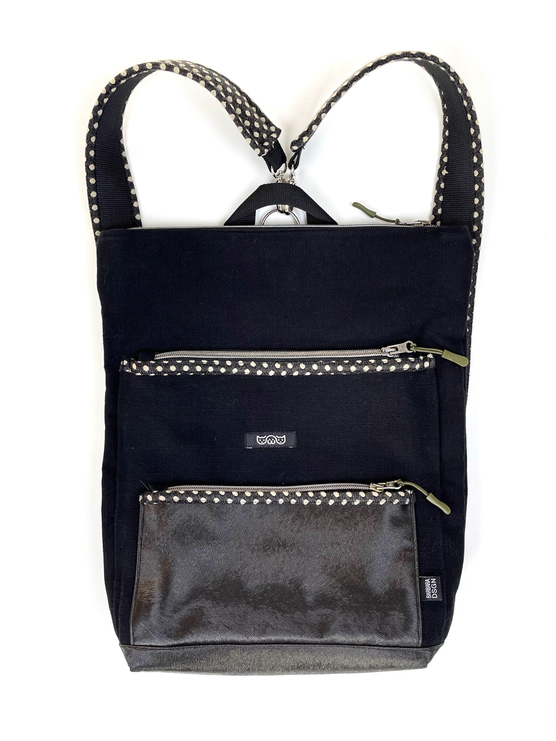 Recycled leather made from plastic bottles, recycled jeans combination.